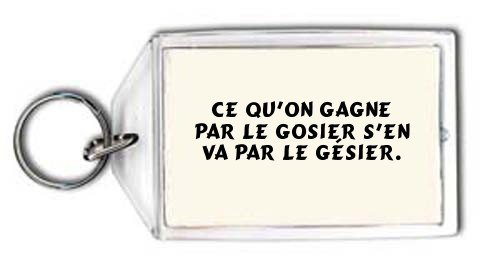 Ce qu'on gagne par le gosier s'en va par le gésier. Porte Clé