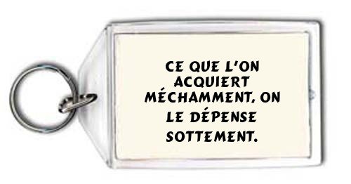 Ce que l'on acquiert méchamment, On le dépense sottement. Porte Clé .