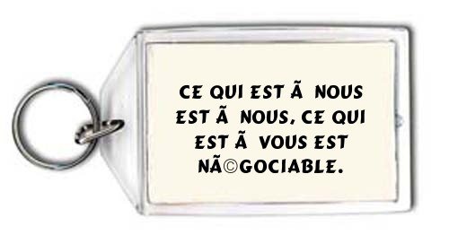 Ce qui est à nous est à nous, ce qui est à vous est négociable. Porte Clé