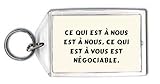 Ce qui est à nous est à nous, ce qui est à vous est négociable. Porte Clé