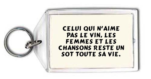 Searching for the best Celui qui n'aime pas le vin, les femmes et les chansons reste un sot toute sa vie. Porte Clé; Congratulations! Check the specifications, features and feedback from customer feedback include price controls and information more satisfactory Celui qui n'aime pas le vin, les femmes et les chansons reste un sot toute sa vie. Porte Clé product reviews!