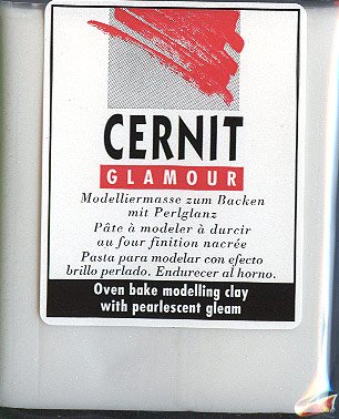 Cernit 56gr. Glamour Blanc?Pâte Polymère. Se cuit au four à 130° pendant 30mn. Idéale pour la création de figurines ou de bijoux de fantaisie. Pâte légèrement pailletée